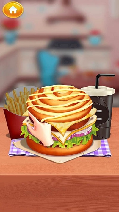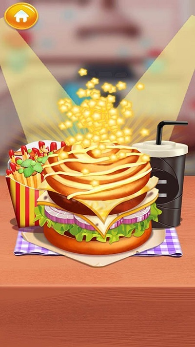 2、轻松愉快的游戏体验:简单的操作配合欢快的背景音乐,让玩家在制作汉堡的过程中获得放松。游戏没有失败惩罚机制,鼓励玩家自由探索各种烹饪可能性;