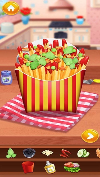 3、深度个性化定制:除了汉堡制作,玩家还可以自由设计餐厅布局,选择墙纸、地板、桌椅等装饰元素。超过100种装饰物品可供收集,打造专属童话餐厅;