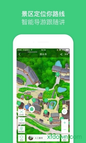 专利微定位纠偏自动触发讲解:通过自主专利GPS+微定位景区导览技术,实现了游览景点时候走到哪里听到哪里;即使在室内GPS信号弱的情况下,也能通过蓝牙信标精确定位到米级精度。
