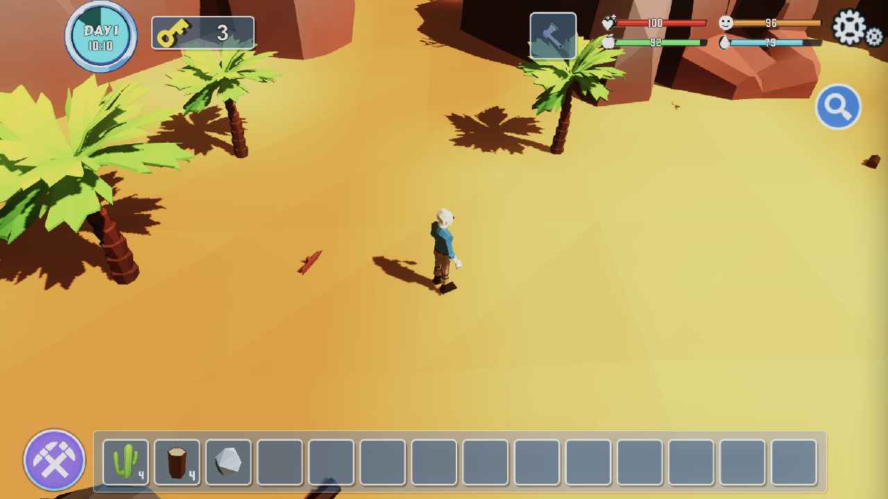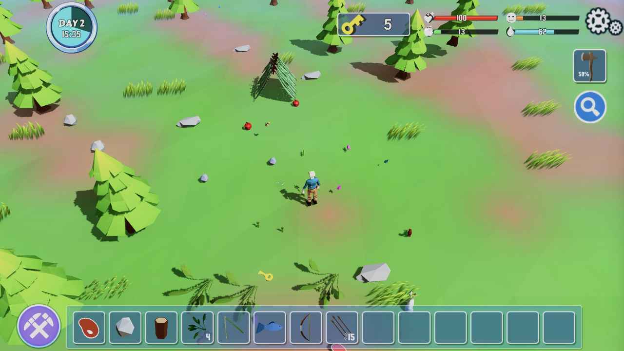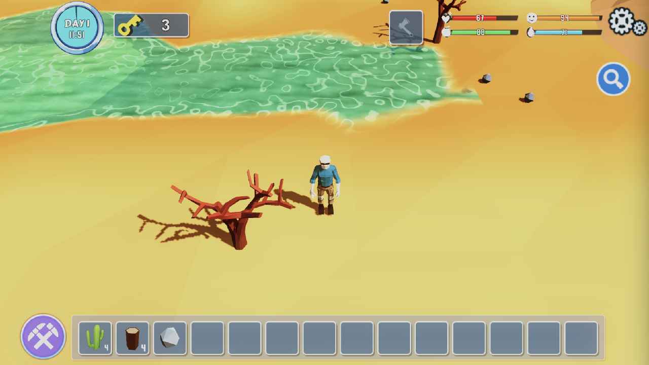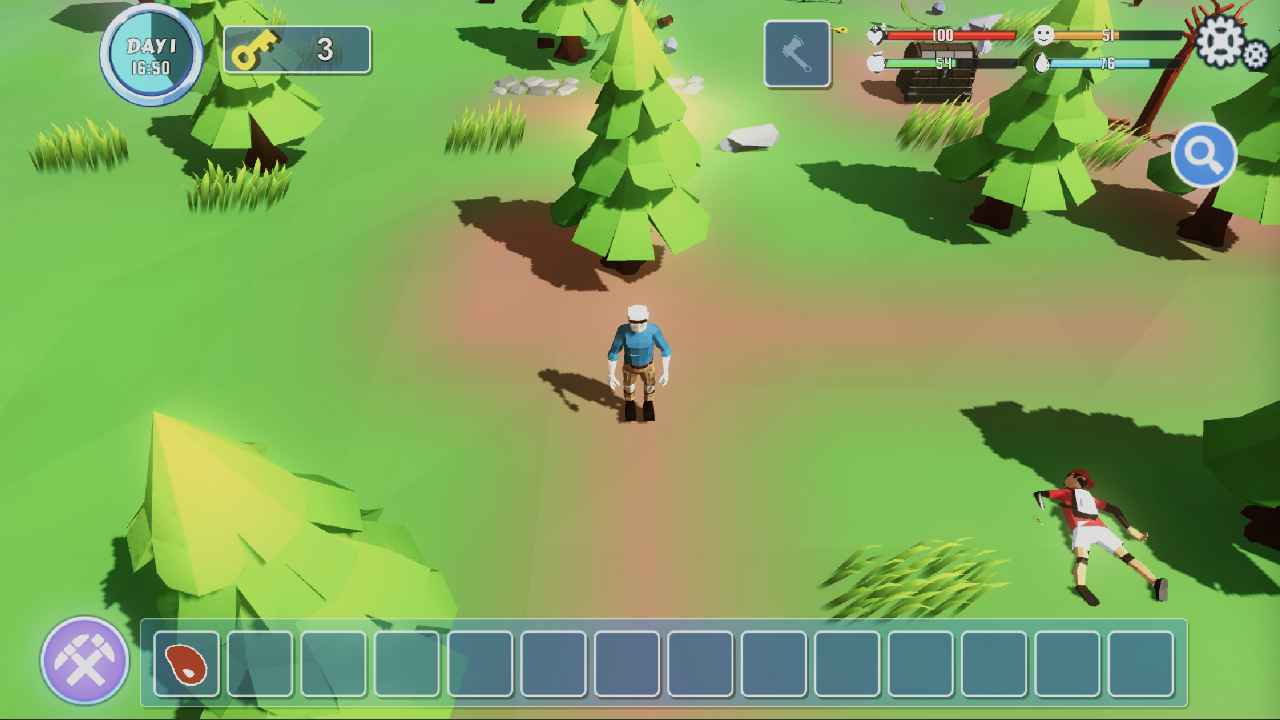 在《荒野迷失》中,玩家将体验一场硬核的生存挑战。游戏开始时,你一无所有,必须通过采集树枝、石头等基础物资制作工具,逐步搭建庇护所、生火取暖。饥饿、口渴和疲劳值会实时影响角色状态,需通过狩猎、采集或钓鱼来维持生命。地图中随机刷新的野兽既是威胁也是资源——击败它们可获得食物与材料,但稍有不慎就会受伤甚至死亡。昼夜交替时,温差和能见度变化会带来额外挑战,而突如其来的暴雨或沙暴更会打乱你的计划。随着探索深入,还能解锁隐藏剧情线索,揭开荒野背后的秘密。