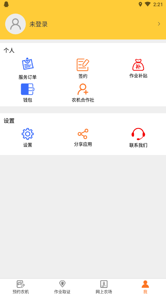 个人中心是用户管理各项业务的核心区域。在这里,用户可以查看和管理所有服务订单,包括农机租赁、维修等各类服务。签约功能让用户能与农机合作社或其他农户建立长期合作关系。作业补贴申请通道方便用户随时提交材料并查询进度。钱包功能支持资金管理和交易记录查询,而农机合作社板块则提供合作社信息查询和加入申请服务,帮助用户更好地参与农机共享。