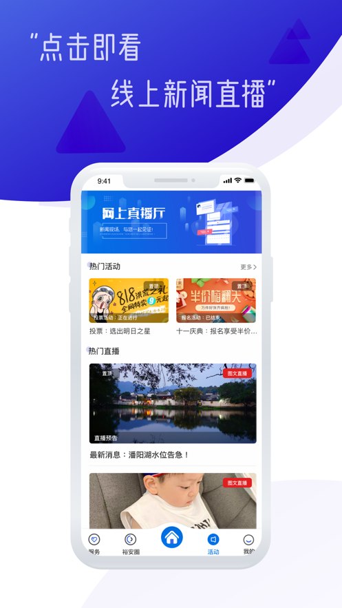 支持图文、视频、直播等多种媒体形式,用户可以观看高清的裕安电视台直播节目,回放重要会议和活动。特别开设的"裕安记忆"专栏,通过老照片、口述历史等形式,生动展现裕安的发展变迁。