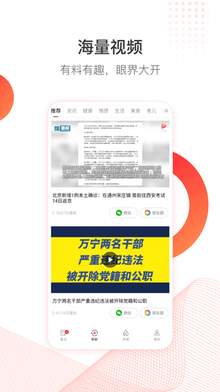 在"看点"板块,用户可以像使用传统新闻App一样,根据自己的阅读偏好对各类新闻频道进行个性化排序,系统会实时更新最新资讯,确保不错过任何热点事件。对于更喜欢视听体验的用户,"视频"板块提供了丰富的短视频内容,涵盖时政要闻、社会热点、娱乐八卦等多个领域,让新闻获取更加生动直观。而"热榜"功能则实时追踪全网热点话题,通过智能算法生成最具讨论价值的热门排行榜,用户不仅可以了解最新舆情,还能参与评论互动,分享自己的观点。