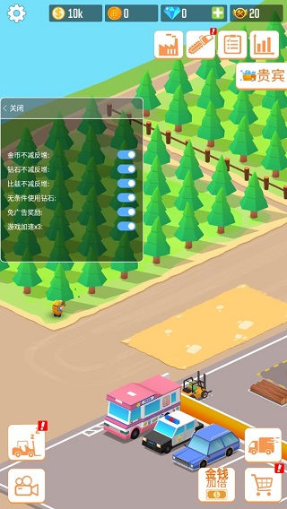 3、丰富的建设项目:从基础的伐木场到高级的木材加工中心,玩家可以自由选择投资项目,打造完整的产业链。