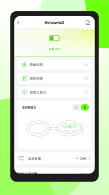 实现与Holoswim2 AR智能泳镜的无缝连接,用户可通过APP对泳镜进行多项个性化设置,包括显示模式、数据采集频率等参数调整。这种深度集成的智能体验让游泳训练更加高效便捷。