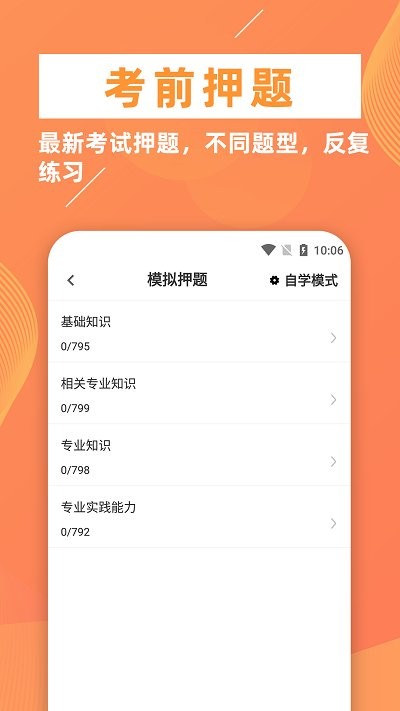1、真题模拟:完全模拟真实考试场景,包括题型分布、时间限制和评分标准,帮助用户提前适应考场节奏。