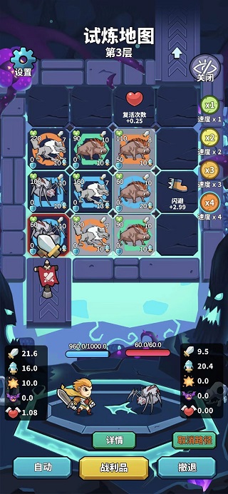 本作最突出的特色在于将传统肉鸽玩法与创新策略系统完美结合。玩家需要像下棋般精心规划每一步行动路线,通过上百种技能的自由组合打造个性化战斗流派。游戏特别设计了动态难度平衡系统,会根据玩家实力智能调整关卡强度,确保挑战性与成就感并存。击败最终BOSS后获得的丰厚奖励不仅能强化英雄基础属性,还能解锁特殊天赋树系统,让角色成长路线更具个性化。战斗过程中实时变化的战场环境和随机事件更增添了策略深度,玩家需要灵活调整战术应对突发状况,这种充满变数的战斗体验正是游戏最大的魅力所在。