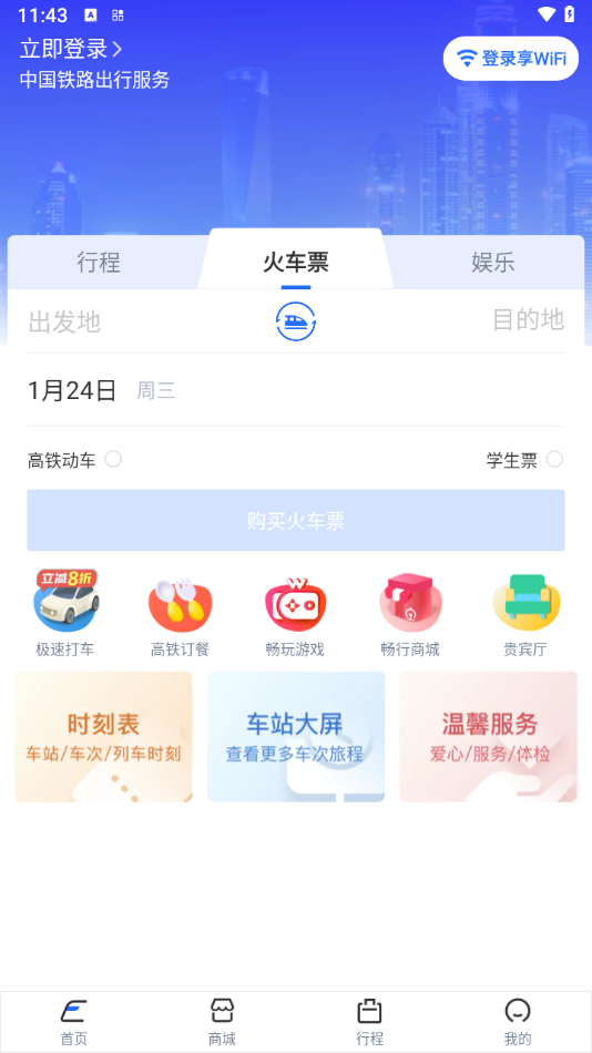 1、首先进入wificcrgt掌上高铁app最新版,登录自己的账号
