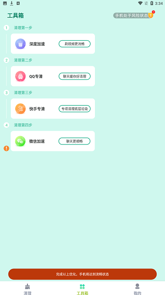 2、软件采用动态内存压缩技术,能在不关闭后台应用的情况下智能释放RAM空间。其垃圾识别算法经过百万级样本训练,可精准定位广告插件残留、卸载残余等隐形垃圾,配合深度清理模式最高可回收30%存储空间,让老机型重获新生。