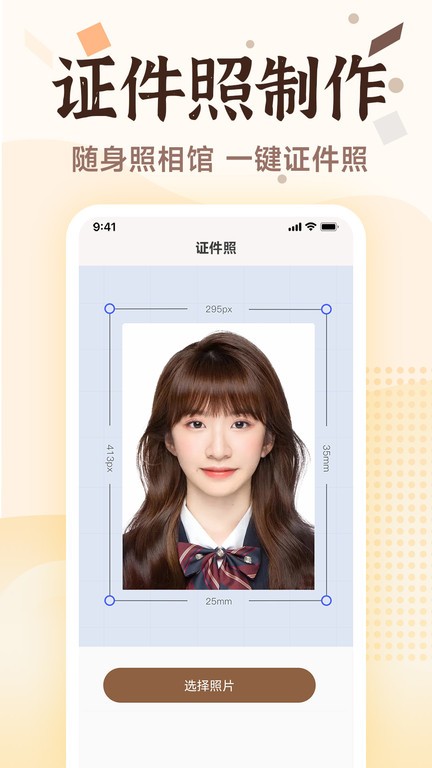 【证件照】AI智能生成证件照,可选择一寸、二寸、身份证尺寸等常见规格,支持背景替换和美颜优化,足不出户就能拍出专业级的美丽电子证件照,省时省力又省钱。
