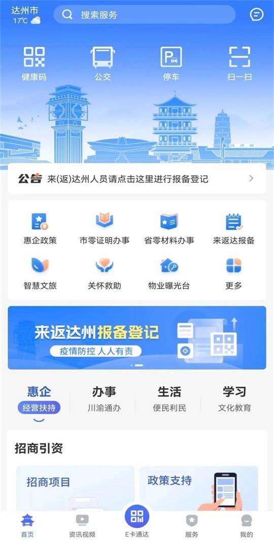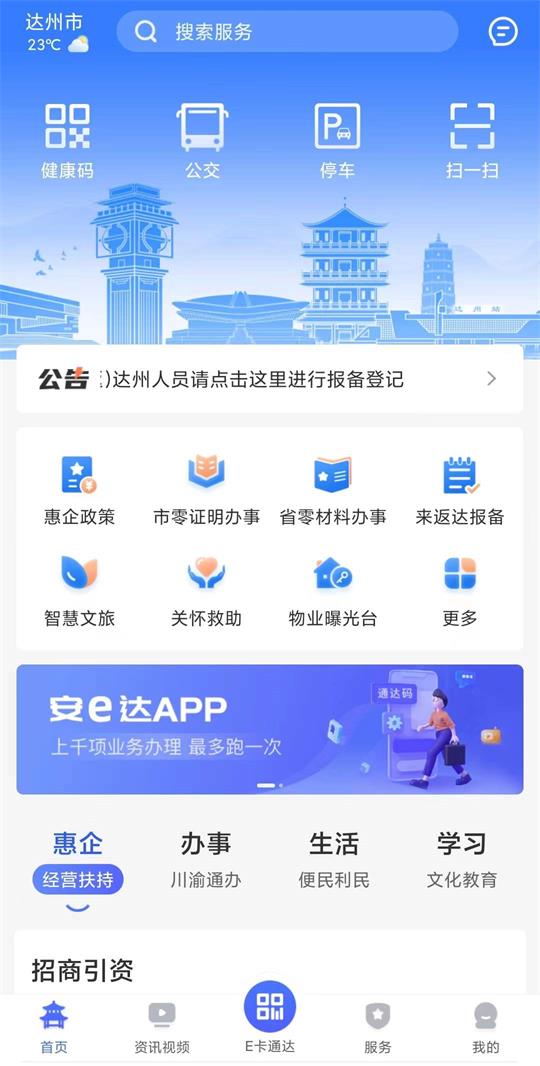 安e达app是由达州打造的智能便捷服务平台,App是一个具有善治、惠民、促业三大主题的App,它是数字经济发展的一个重要应用,可以让更多的数据运行,更少的人运行,更高效的城市治理,更便捷的市民服务。