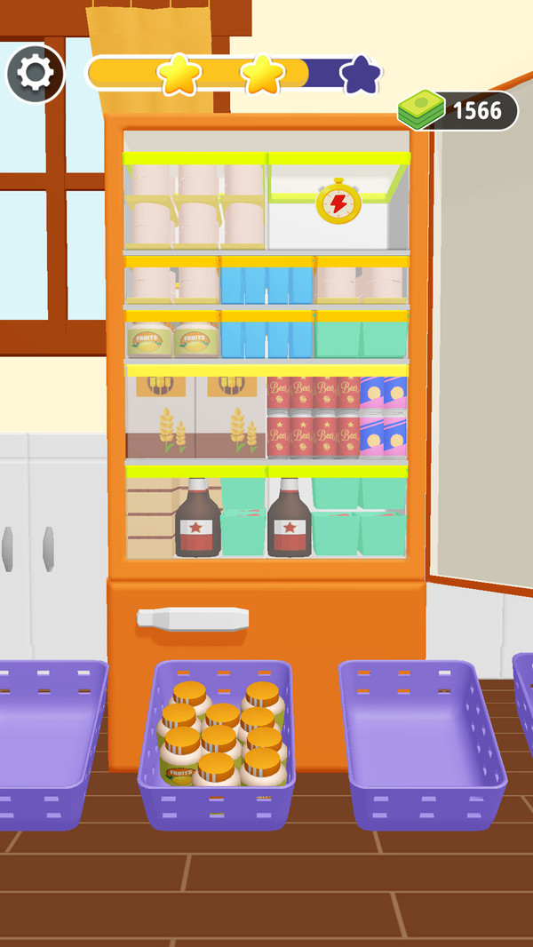 1、设计师采用低多边形美术风格,搭配马卡龙色系呈现食材,每个草莓的纹理和牛奶盒的折角都经过精心打磨。动态光影效果让冰箱隔层产生真实的金属反光,当玩家完成完美收纳时会触发星光特效。