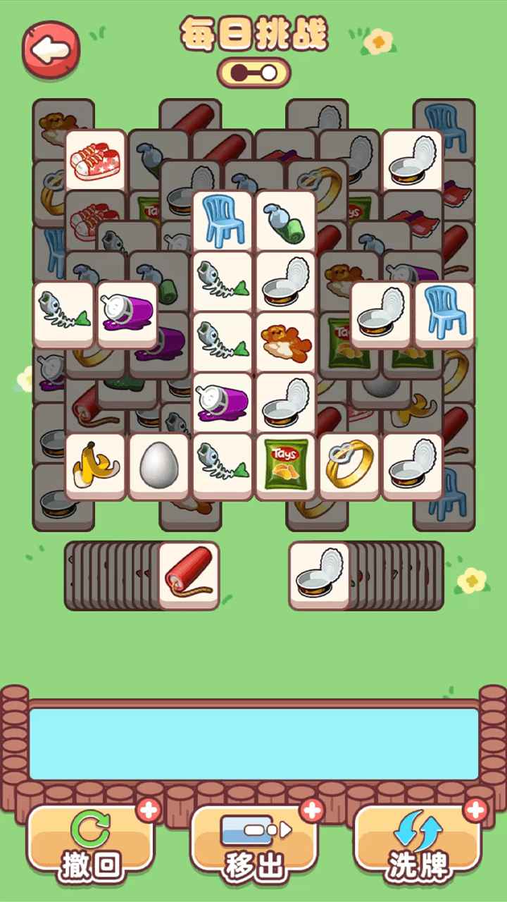 4、玩家需要移动不同颜色的方块,将它们放置在卡槽中,当三个相同颜色的方块连在一起时就能快速消除完成任务。