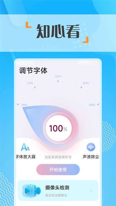 知心看app是一款专为中老年用户和视力不佳人群设计的实用工具软件。该应用通过创新的字体放大技术,让用户能够轻松调整系统字体大小,有效解决日常阅读困难。除了核心的字体调节功能外,软件还贴心地集成了放大镜、日历助手、声波除尘等实用工具,界面设计简洁明了,各功能模块划分清晰。无论是查看手机内容还是处理日常事务,知心看都能为用户提供便捷高效的使用体验,是提升数字生活品质的得力助手。