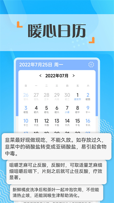 ·【日历助手】集成智能日历系统,不仅可查看每日日程安排,还能自动同步节假日信息,提供天气预报提醒,为用户的日常出行和生活规划提供全方位辅助。
