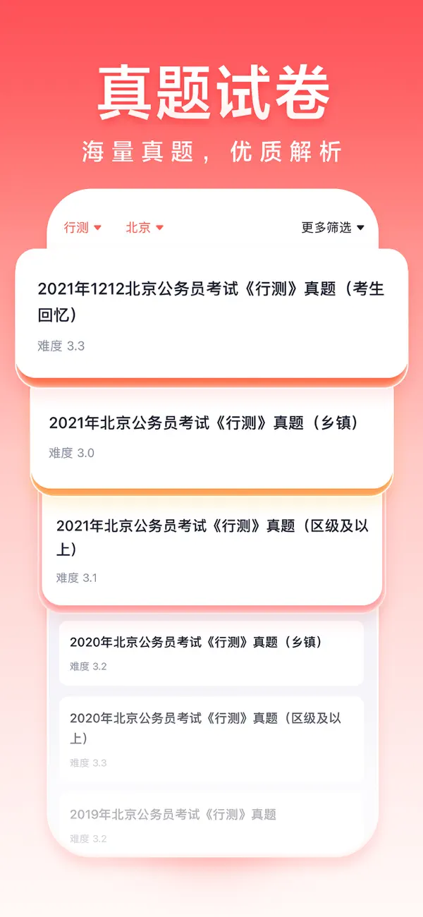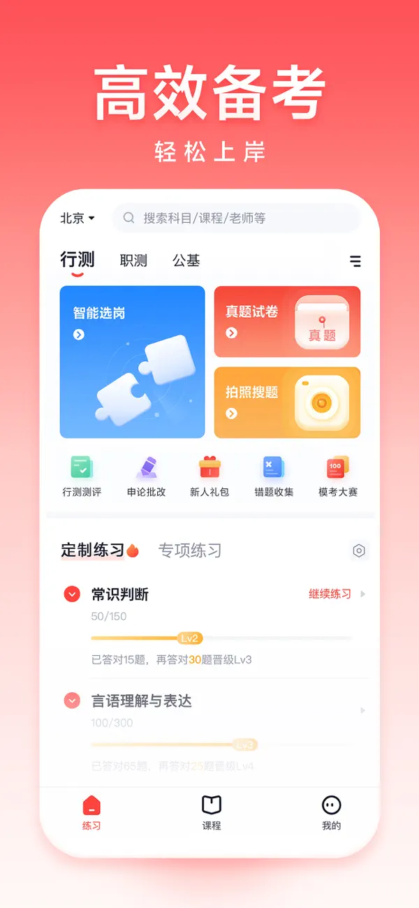 专门为用户提供便捷高效的备考服务,让用户能够随时随地打开手机学习,庞大的练习库能够满足用户日常练习的需求,帮助用户更好的掌握重点难点,所有准备参加公务员考试事业编招生考试的用户轻松上岸。平台凭借其专业的内容研发能力和智能化的学习系统,已成为公考备考领域的标杆产品。用户反馈显示,使用该软件备考的考生在考试通过率和成绩提升方面都有显著优势。无论是系统化的知识讲解,还是精准的能力测评,都体现了平台对公考备考痛点的深刻理解。