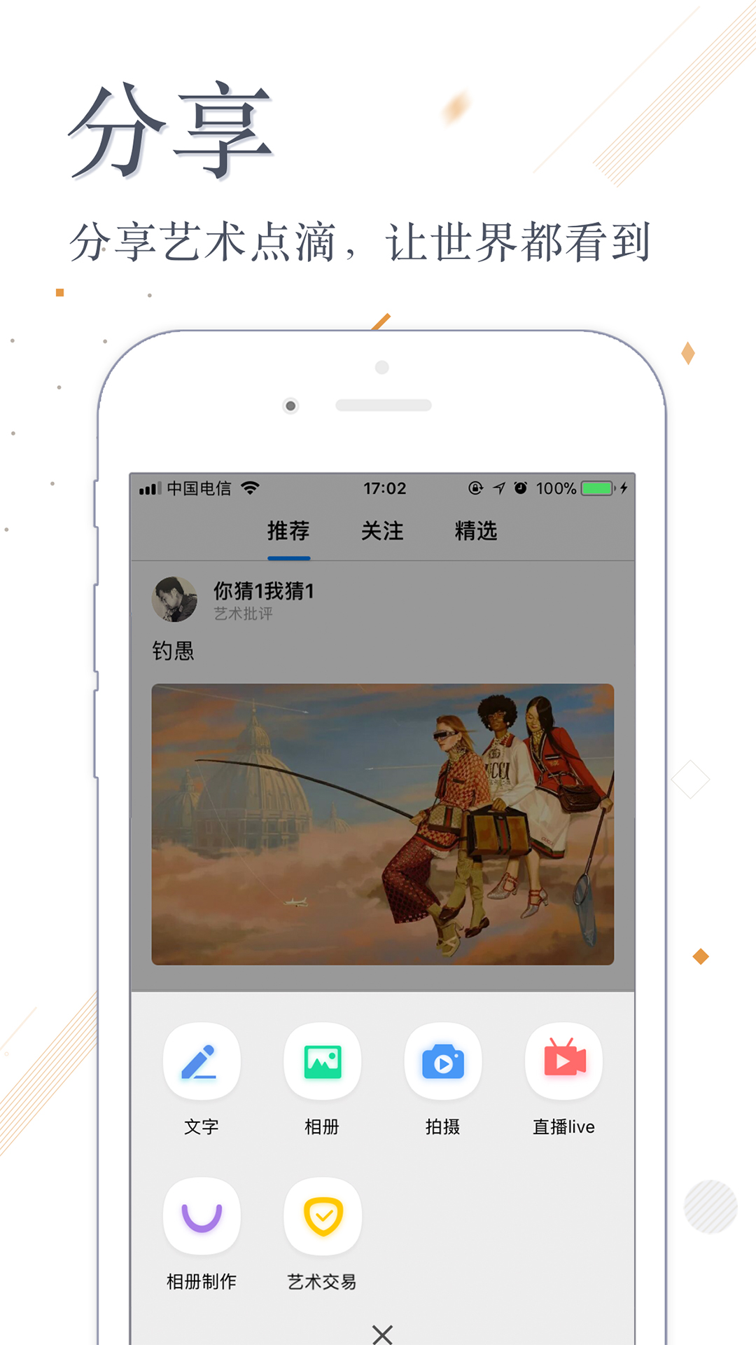 艺术圈子:在这里您可以自由分享作品、交流评画心得、参与听展活动,还能结识志同道合的藏友,约泡功夫茶畅谈艺术,更有专业艺师分享墨趣心得;