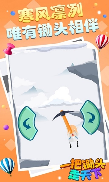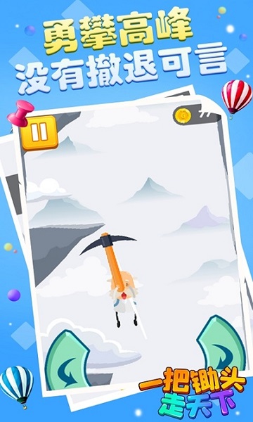 一把锄头走天下是一款极具创意的休闲攀爬冒险游戏,玩家将化身一位白发苍苍的老爷爷,手持唯一的锄头展开一场惊险刺激的登山之旅。在这个充满挑战的世界里,你需要运用智慧和技巧,帮助老爷爷翻越重重险峻的山峰,最终与亲人团聚。游戏玩法新颖独特,玩家需要充分利用锄头的特性,通过精准的操作勾住山崖上的凸起石块,获得向上攀爬的动力。随着高度的增加,难度也会逐步提升,考验着玩家的反应能力和操作技巧。