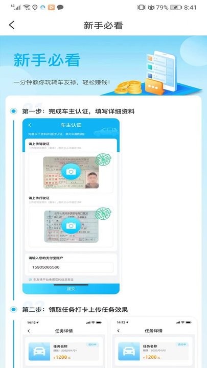 车友禄为用户提供了丰富的任务系统,包括日常签到、服务体验、分享推荐等多种任务类型。用户可以根据自身需求选择适合的任务进行参与,完成任务后即可获得相应积分或优惠券奖励。这些奖励可直接用于平台上的各项服务消费,让用户享受更多实惠。平台还会定期更新任务内容,保持用户参与的新鲜感和积极性。