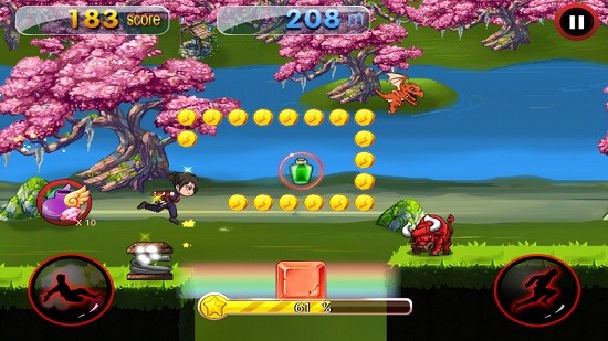 通过不断挑战更高难度的关卡,玩家可以提升角色能力,最终成为跑得最快、实力最强的传奇忍者。