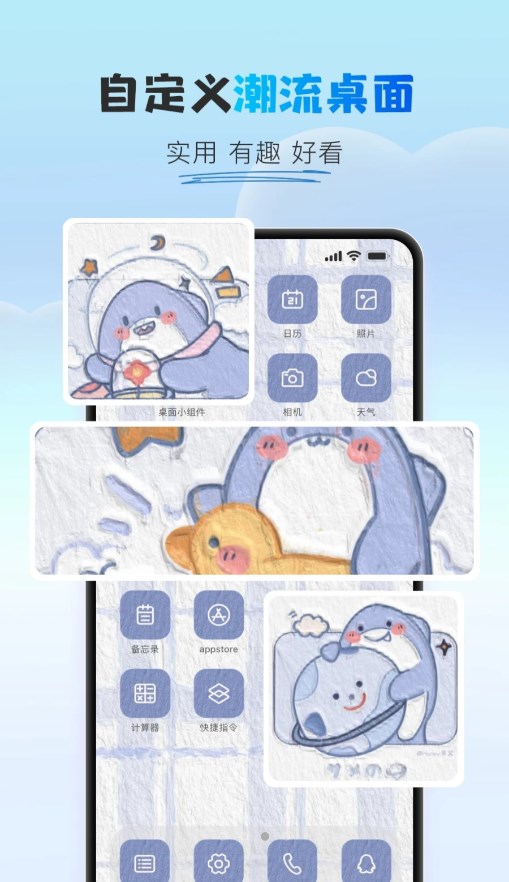 通过自由组合各种元素,打造既实用又好看的个性化桌面。支持拖拽布局、层级调整等高级功能,让用户可以像设计师一样创作属于自己的手机界面。