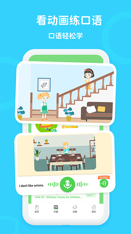 轻松学是一款专为儿童英语口语学习打造的智能软件,通过趣味互动的方式帮助孩子提升语言表达能力。软件采用生动活泼的卡通界面设计,内置丰富多样的英语对话场景,让孩子在轻松愉快的氛围中自然习得地道口语。同时软件还贴心地为成人用户设计了专属学习模式,满足不同年龄段用户的学习需求。无论是基础发音练习还是日常会话训练,都能在这里找到合适的学习内容。