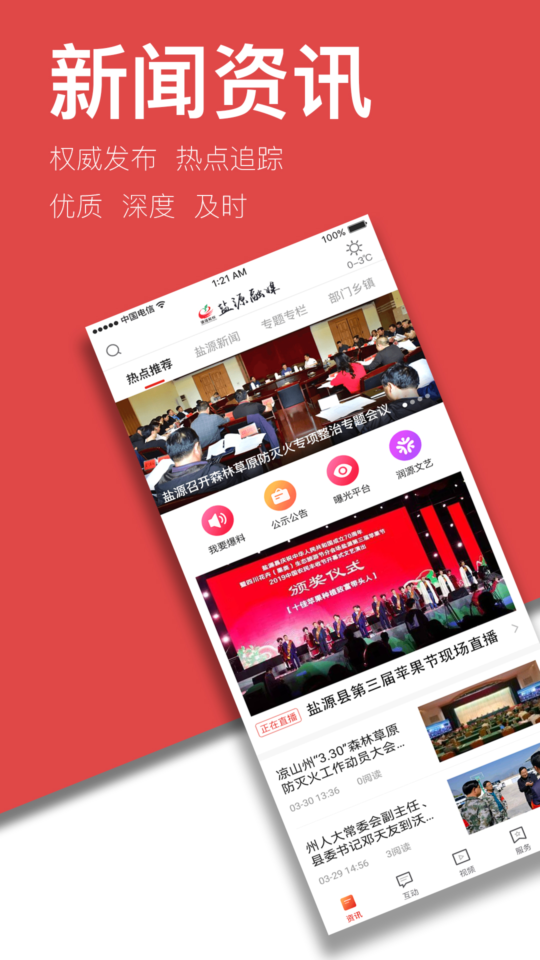 传播盐源声音:及时准确传递县委县政府重大决策部署,搭建政令畅通的信息高速公路。