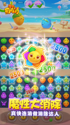2、华丽特效:游戏中的消除特效绚丽夺目,星光闪耀、光芒四射的视觉盛宴令人目不暇接。小小的水果也能创造奇迹,等待你来发掘更多精彩瞬间。