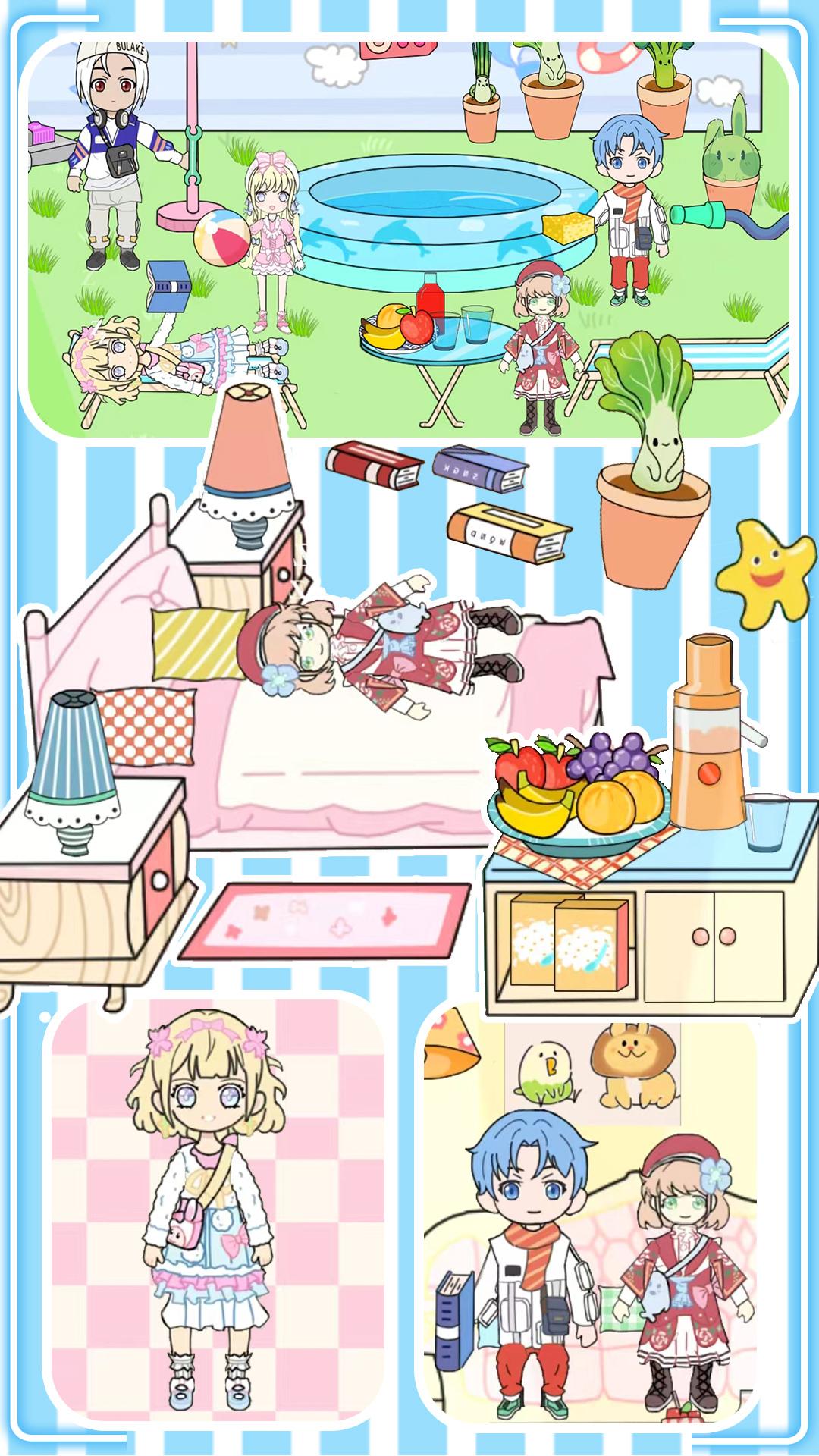 1. 游戏采用清新可爱的卡通画风,每个角色都拥有生动活泼的表情和动作,搭配精心设计的场景细节,营造出令人愉悦的视觉体验。超过100种服装配饰可供选择,让你随心所欲打造时尚造型。
