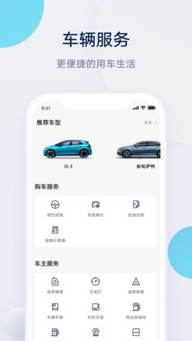 1、专为大众汽车的旗下车主用户量身打造,界面设计简洁直观,操作流程符合大众车主使用习惯,新手也能快速上手。