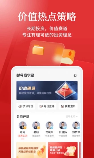 财今堂app是一款专业高效的财经教育培训软件,致力于为用户打造全方位的金融知识学习平台。该软件不仅提供海量优质的财经课程资源,更汇聚了国内顶尖的投资专家团队,通过系统化的教学内容和个性化的学习方案,帮助用户掌握科学的资产配置方法,提升投资理财能力,实现财富的稳健增长。