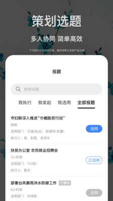 记者和主编可以通过手机端实时查看新闻线索,快速完成选题申报和审批流程。系统支持多人协同操作,团队成员可以即时查看选题状态,避免重复工作,大幅提升选题效率。