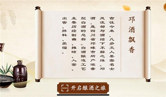 通过3D动画和实景拍摄相结合的方式,软件生动展示了制曲、发酵、蒸馏等关键工序的每个细节。用户可以360度观察酿酒设备的结构,了解温度控制、时间把控等专业技巧。
