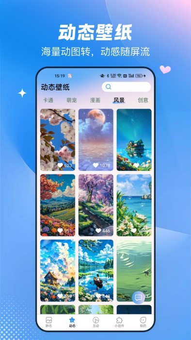 免费心动app是一款专为手机用户打造的个性化桌面美化软件,它不仅拥有海量精美壁纸资源,更融合了丰富的互动元素和实用功能,让你的手机桌面焕发独特魅力。作为一款全能型壁纸应用,它支持动态与静态壁纸自由切换,涵盖自然风光、抽象艺术、动漫游戏等数十种分类,每张壁纸都经过专业团队精心筛选,确保完美适配各类手机屏幕尺寸。