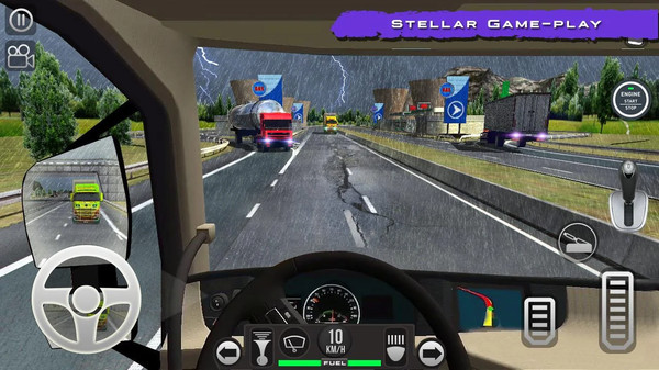 2、游戏采用第一人称视角设计,完美还原真实驾驶体验。玩家可以感受到方向盘的操作手感、后视镜的视野范围等细节,让驾驶过程更加真实。游戏还提供了多款造型炫酷的未来风格卡车,每辆车都经过精心设计,等待玩家来解锁体验。