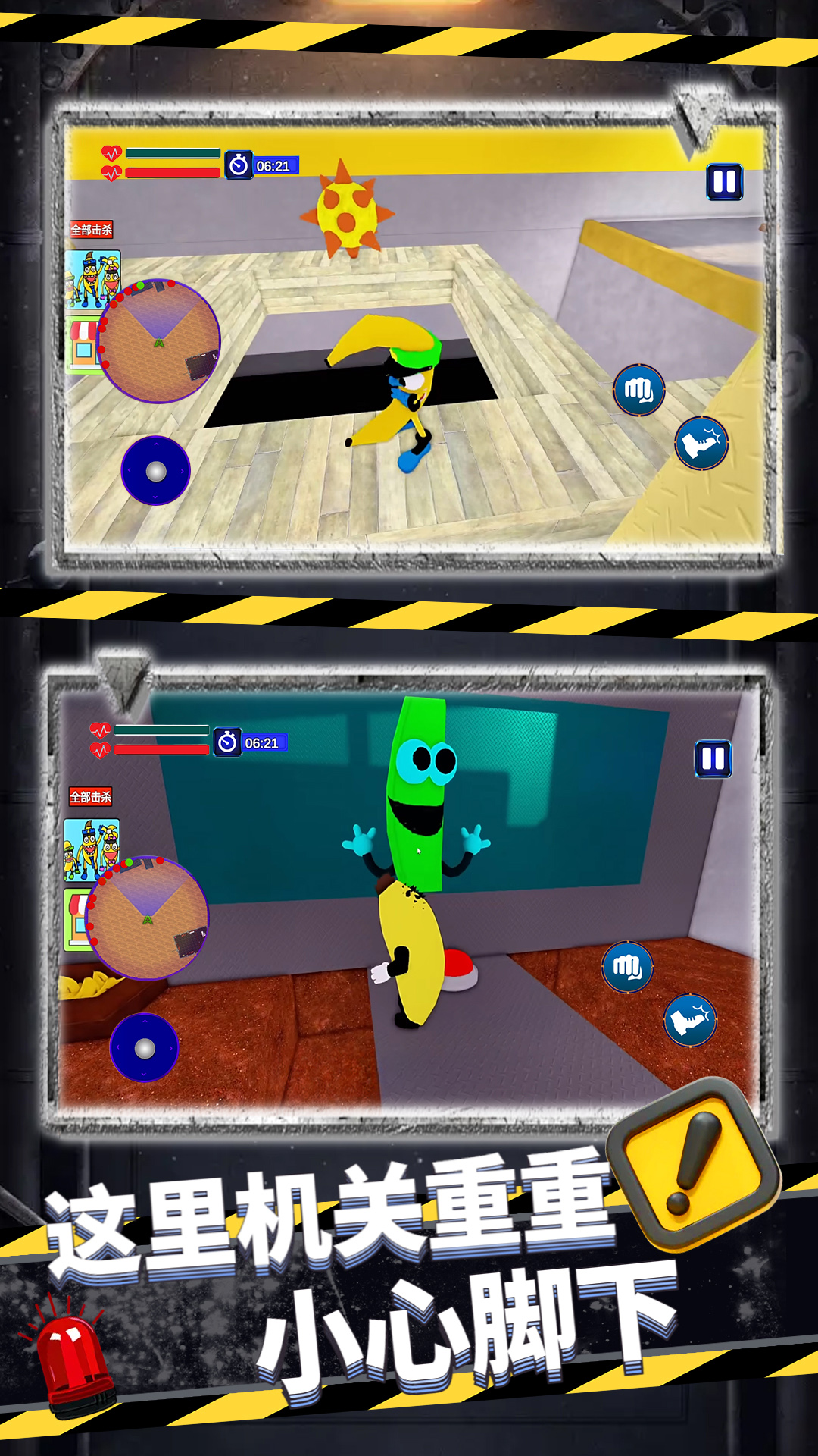 《赶快逃离香蕉的追捕》拥有许多独特的亮点,首先是其幽默搞怪的画风,香蕉军团夸张的表情和动作让人忍俊不禁。游戏支持多人联机模式,玩家可以邀请好友一起组队逃脱,或者互相竞争看谁跑得更远。丰富的角色系统也是一大特色,玩家可以解锁不同外观和技能的角色,如忍者、宇航员等,每个角色都有专属的特殊能力。游戏还定期更新节日主题活动和限定道具,保持玩家的新鲜感。流畅的操作手感和精心设计的关卡节奏,让玩家在紧张刺激中享受跑酷的乐趣。