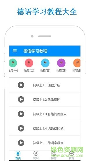 - 高清视频课程由德语专业教师录制,包含发音口型特写、情景演绎等教学形式,支持倍速播放和重点片段循环学习;