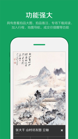 [功能强大便捷]:提供全方位的拍卖预展信息服务,支持多条件组合搜索。智能导航系统可一键规划前往拍场的最佳路线,成交提醒功能确保用户实时掌握价格动态。
