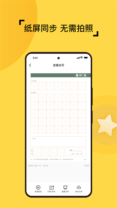 ·专利的纸屏同步技术彻底解决了拍照变形、反光等问题,上传的作品能100%还原纸质原貌。系统还具备智能图像优化功能,可以自动矫正倾斜、去除背景杂色,呈现比专业单反拍摄更清晰的细节。