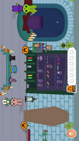 化装店:这里有琳琅满目的万圣节服装供你选择!想变成优雅的美人鱼,可爱的南瓜精灵,还是神秘的女巫?所有装扮都栩栩如生,而且越特别的装扮能获得更多糖果奖励哦!
