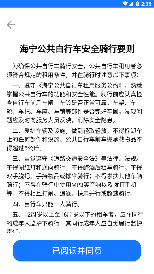 (5)骑行结束后,需到达桩范围内,直接将车锁关闭,即可完成锁车(建议打开本应用的通知权限,可以获得更好的使用体验);系统会推送骑行总结,包括本次骑行距离、节约碳排放量等环保数据。