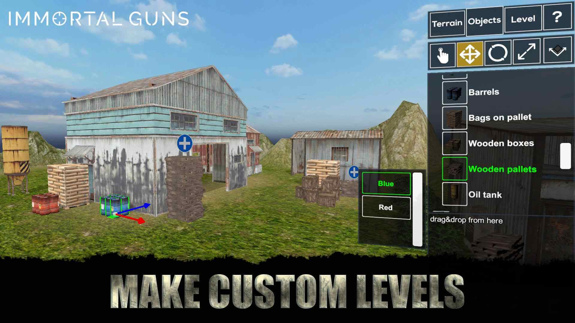《不朽枪支》是一款融合强大关卡编辑功能的射击游戏,玩家可以利用内置的100多种素材自由构建个性化地图,或下载其他玩家创作的精彩关卡。游戏内置的编辑器操作简单灵活,配备专业的地形构建工具和对象调整功能,让你轻松设计出结构复杂的战场环境。通过调整重力、移动速度等物理参数,还能创造出颠覆传统的特殊玩法。所有自制关卡均可一键上传至社区,并支持最多7人联机体验,让创意与竞技完美结合。