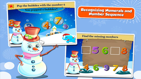 游戏中有一个快乐可爱的雪人。和孩子们一起学习很有趣。快来下载吧。