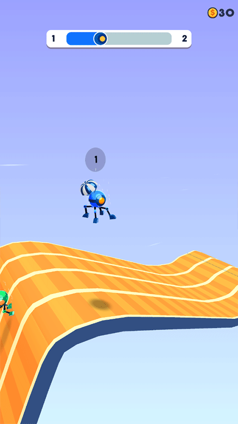 1、游戏开始时机器人呈现球体形态,轻触屏幕即可展开四条机械腿开始爬行,通过连续点击可以调整移动节奏。2、长按屏幕会触发特殊技能,当机器人头顶出现降落伞标志时即可腾空飞行,这个技巧能帮你跨越大型障碍。3、遇到特定机关时会触发隐藏机制,降落伞将带你直接飞跃到终点,体验瞬间通关的爽快感。4、游戏内设有丰富的收集系统,使用金币不仅能购买炫酷的机器人皮肤,还能解锁特殊动作和通关特效,让跑酷过程更具个性化。