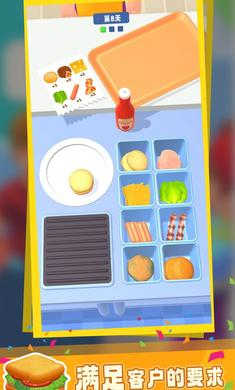 2、逼真的画面设计是游戏的一大亮点,从食材的纹理到烹饪过程的细节,都力求还原真实场景。玩家可以感受到制作汉堡的每一个步骤,体验从原料到成品的完整过程。