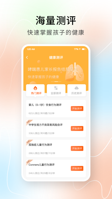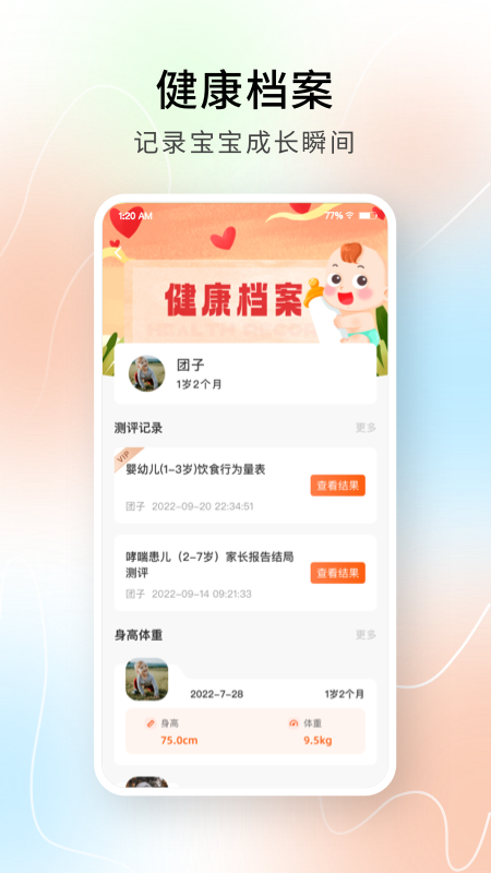 你想了解宝宝的身体情况,在橙心守护,每一年龄段的健康测评给你做好专业指导;