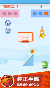 游戏模拟真实的投篮物理效果,玩家需要准确计算力度和角度,将篮球完美投入篮筐,通过连续得分累积更高积分。