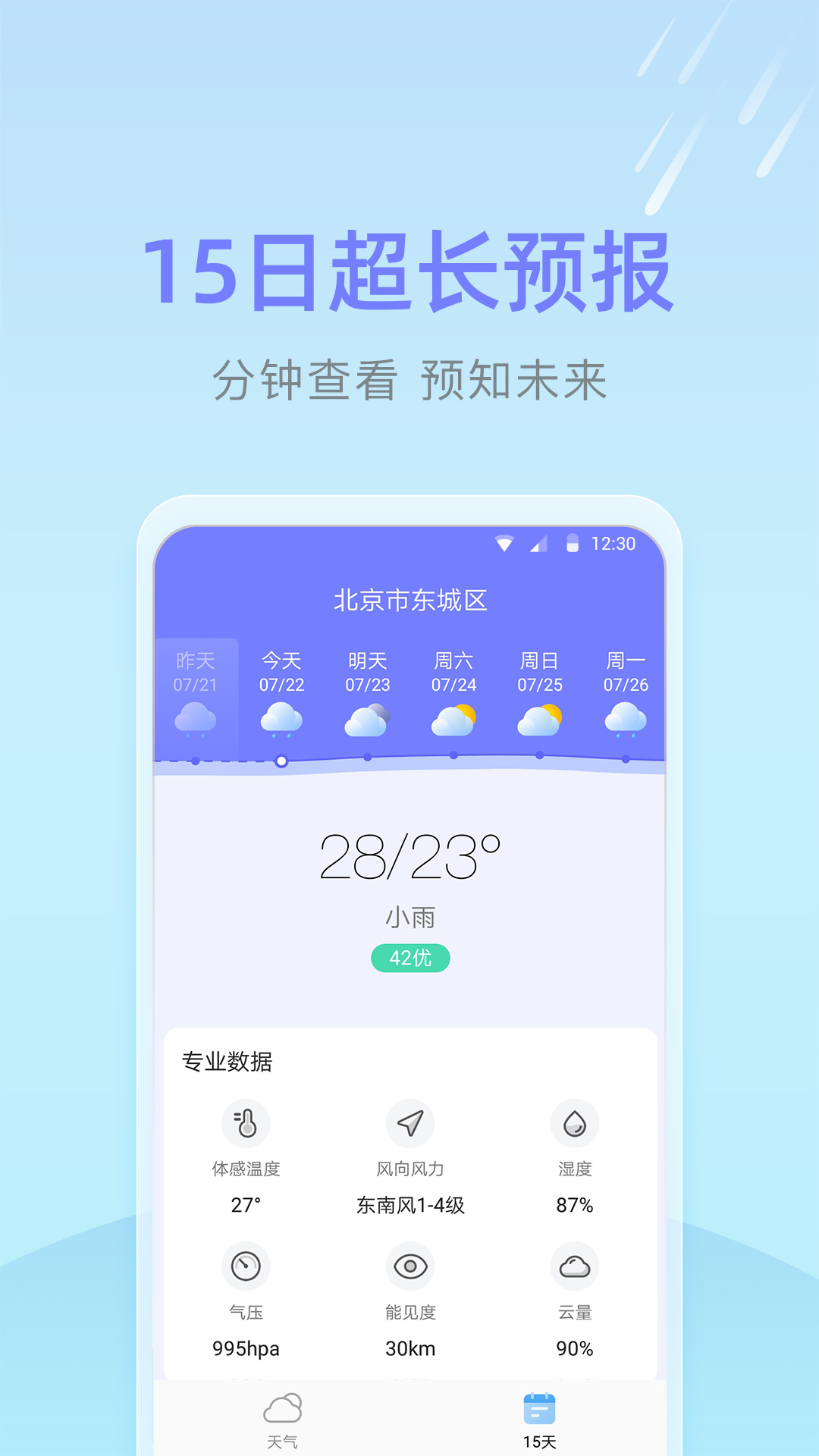 速达天气是一款专业的实时天气查询软件,能够为用户提供准确可靠的天气信息服务。该应用支持全国多个城市的天气查询,只需简单操作即可切换所在位置,随时随地掌握当地的气候变化。除了基本的天气信息外,还提供空气质量、风力风向等详细数据,让您对天气状况了如指掌。无论是日常生活还是旅行出差,都能为您提供贴心的天气参考。