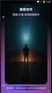 1,你在插图创作中只要把歌词或者文章编辑出来,也可立即生成图片。这项功能特别适合音乐人和作家进行视觉化创作,AI会分析文本情感和意境,自动匹配合适的视觉元素和色彩基调,将抽象的文字转化为具象的画面。