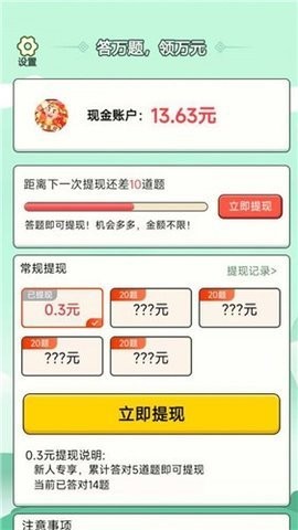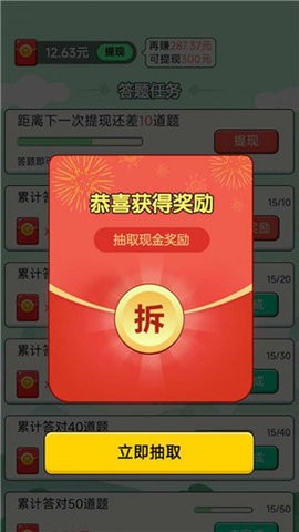 游戏特别设置了丰厚的红包奖励机制,玩家在顺利通关后即可获得随机金额的红包奖励。每日登录、连续签到、邀请好友等都能获得额外奖励机会。系统还会根据玩家的答题表现智能调整题目难度,确保每位玩家都能获得最适合自己的挑战体验。